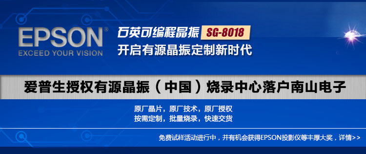 爱普生与球信网电子共同为有新品开发和型号替换需求的用户,免费提供SG-8018系列石英可编程晶振样品。