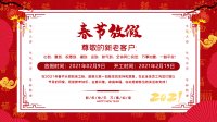 球信网电子2021年放假时间安排: (1) 2 月 9 日至 2 月 18 日放假,共计 10 天。2月19日开始正常上班。 (2) 2 月 18 日(年初七)安排部分业务、跟单、库房人员值班; (3) 2 月 7 日、2 月 20 日为...