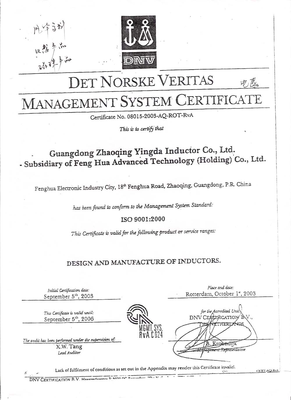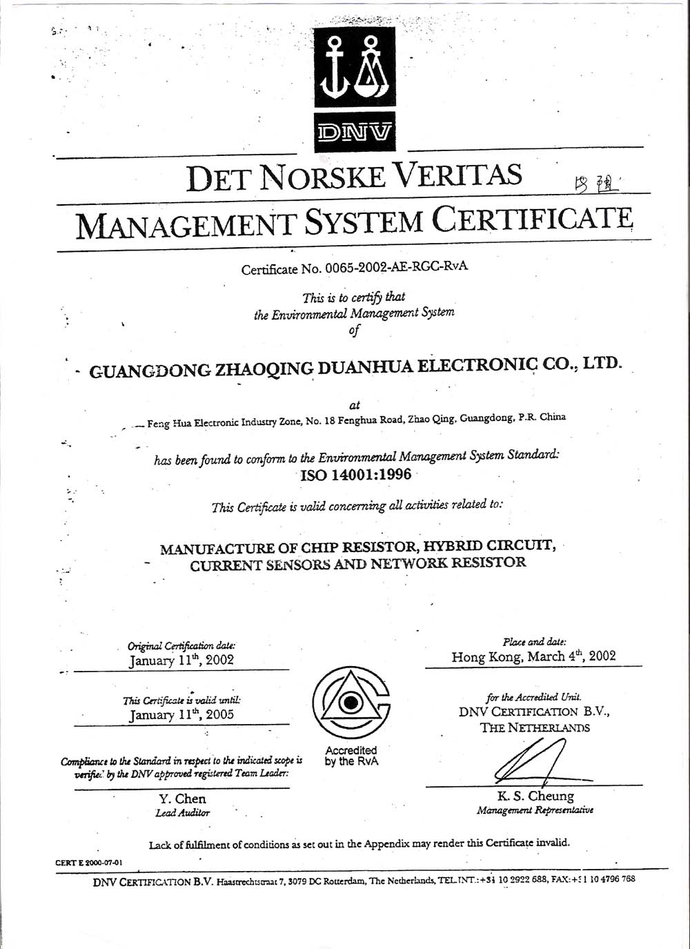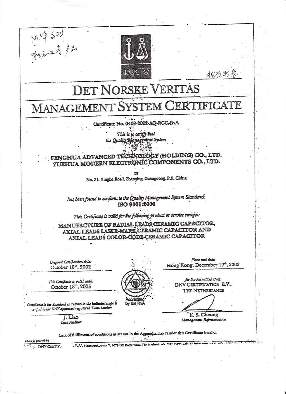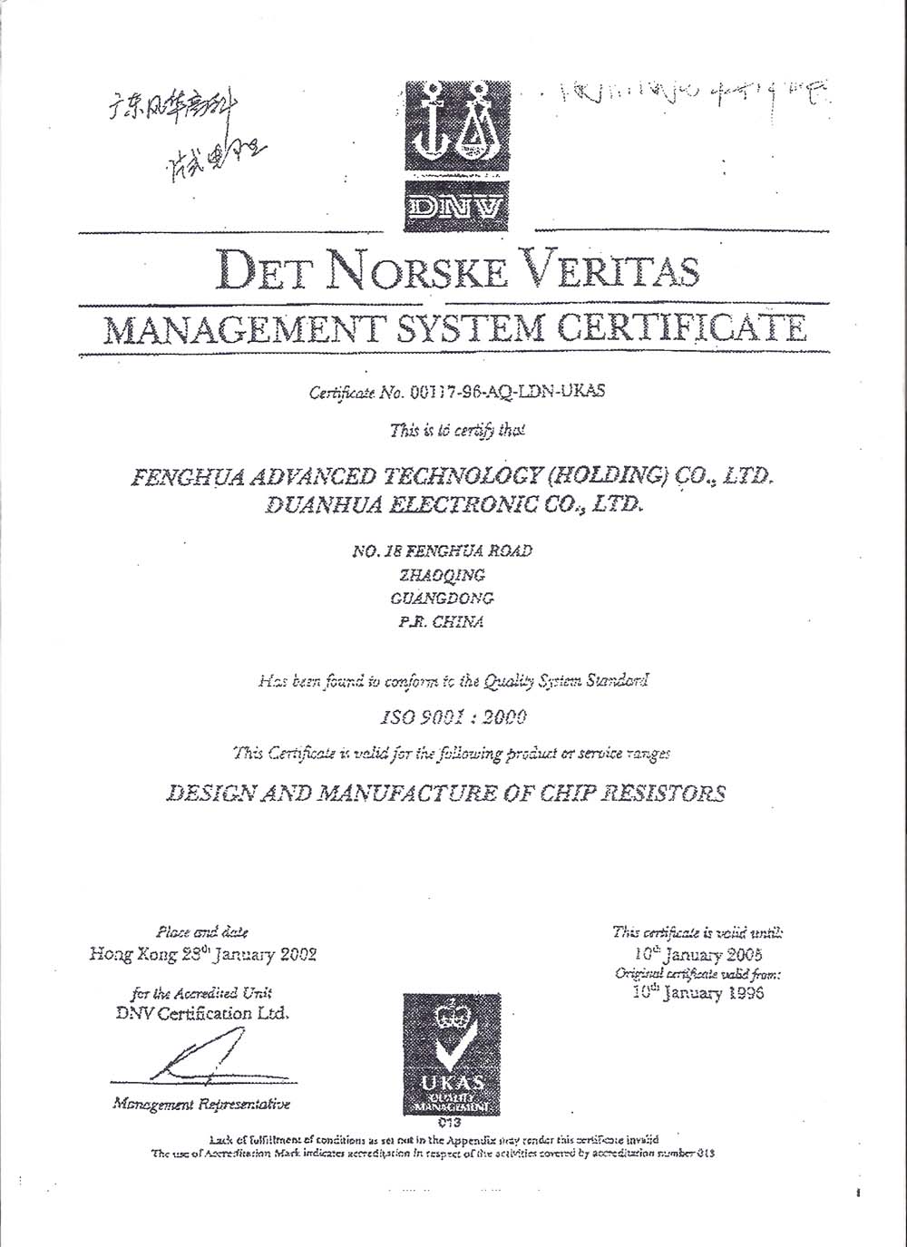 风华高科是全球贴片被动元器件排名八强的知名企业 ,早在2000之前年就实现了贴片电容,贴片电阻,贴片电感,贴片二极管,贴片三极管,贴片磁珠,贴片磁珠排,贴片功率电感,贴片钽电容,贴片晶振,贴片电解电容等系列产品的无铅化和标准化,通过了ISO9000和ISO1400认证。 同时,球信网半导体作为风华高科直接授权代理,风华高科也为其提供了相关的资质文件 以下图片可点击放大。