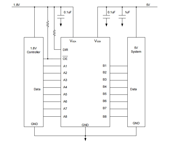 • 控制输入(DIR和OE)VIH和VIL电平以VCCA为基准